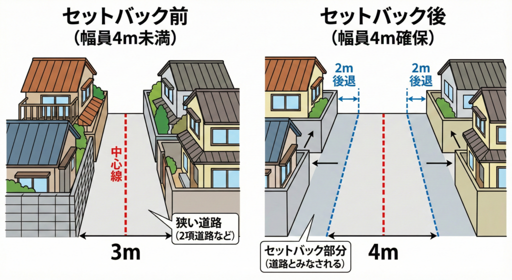 そこで適用されるのが「セットバック(後退)」というルールです。